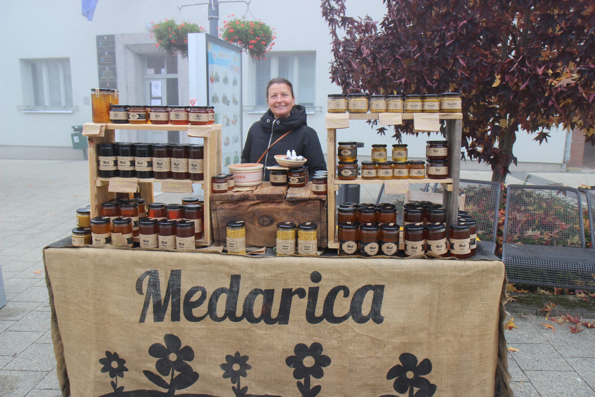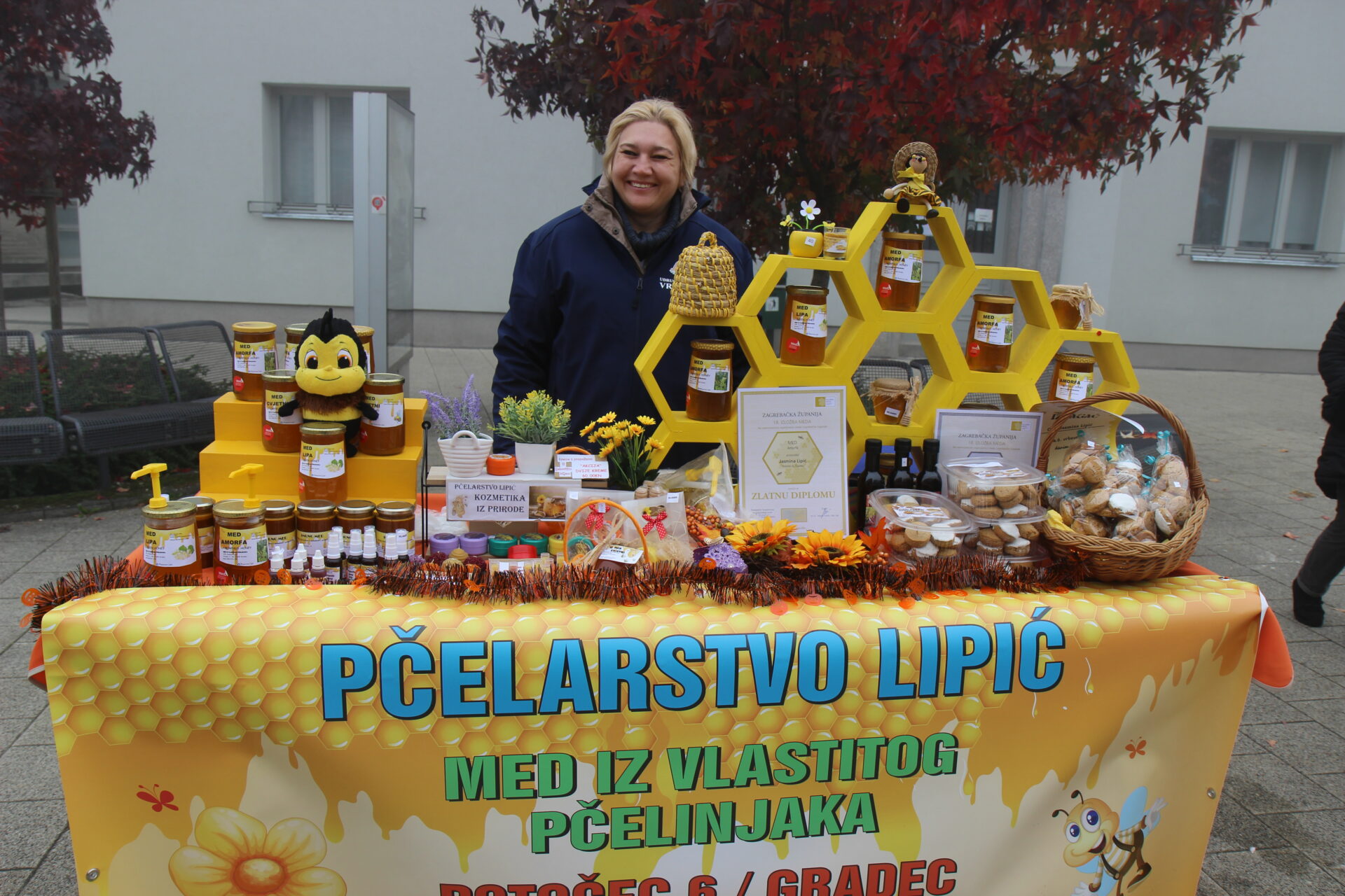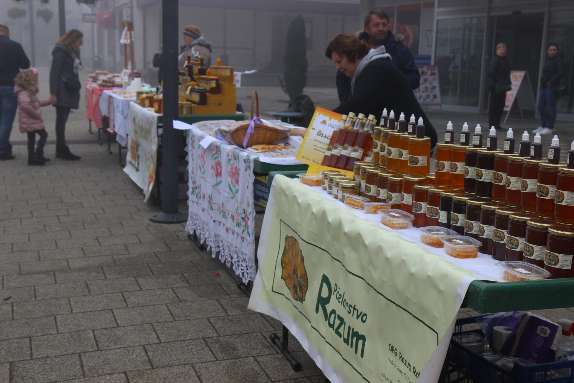 Građani su na trgu mogli kušati i kupiti različite vrste meda i ostale domaće proizvode. Izlagači su bili: Pčelarstvo Lipić, OPG Crneković, OPG Ježić, Medarica – OPG Lucija Harapin, OPG Štefica Havoić, Svjećarsko – medarski obrt Tomica Marica, Sirana Rajtar, OPG Mladen Ježić, IFS Brčevec (kolači koje su pripremile udruge iz Lonjice, Gradečkog Pavlovca, umirovljenici i IFS Brčevec), OPG Razum Robert. Također, u kućici na trgu posjetitelji su mogli pojesti hranu koje je pripremio Catering Mađerec – „Anina klet“.