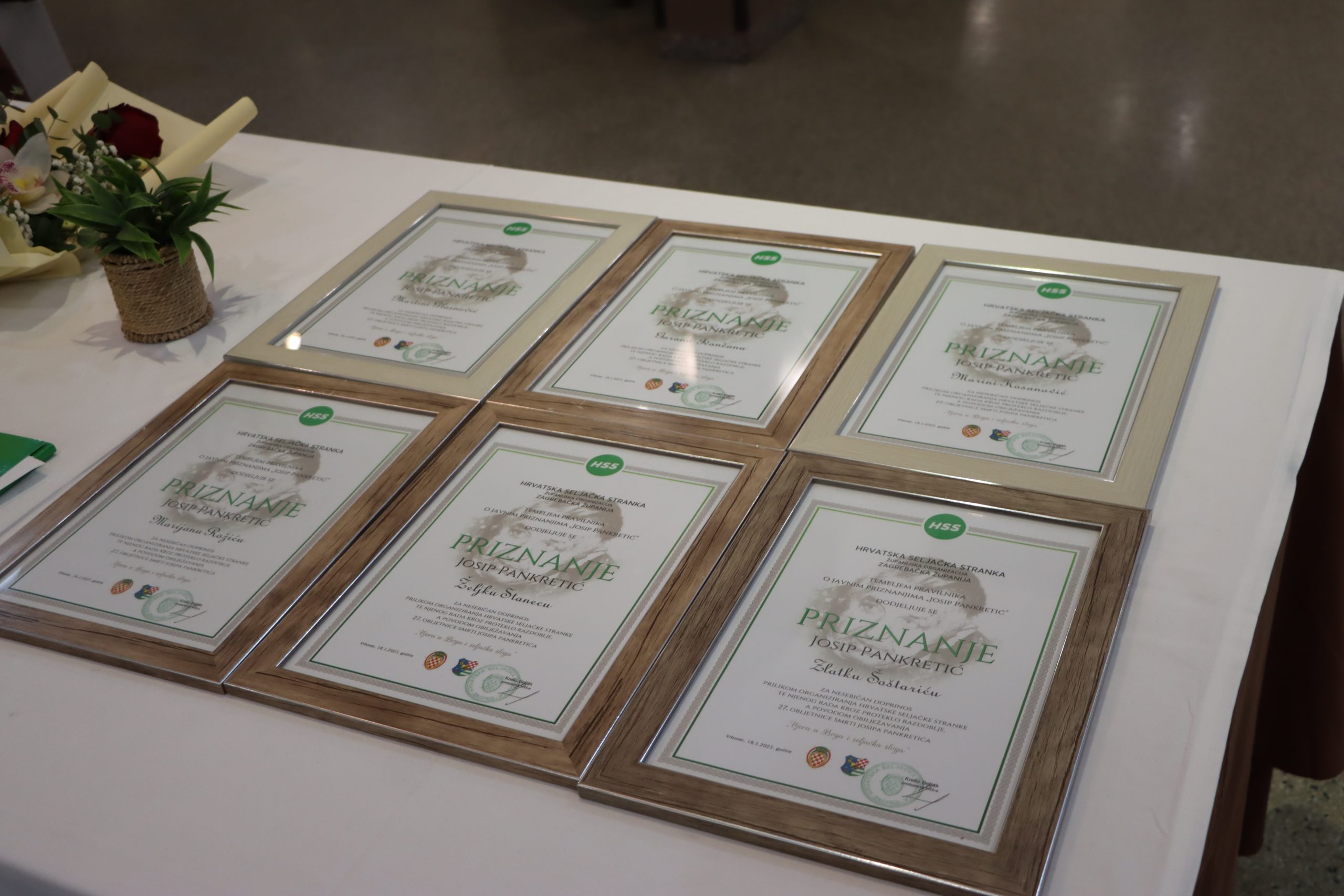 Na svečanosti su dodijeljena priznanja s likom „Josipa Pankretića onim članovima i članicama HSS-a koji doprinose očuvanju i napretku HSS-a te promicanju ostavštine, života i djela Josipa Pankretića. Priznanja su dodijeljena Martini Glasnović, Goranu Ivančanu, Marini Kosanović, Marijanu Rožiću, Željku Stanecu i Zlatku Šoštariću.