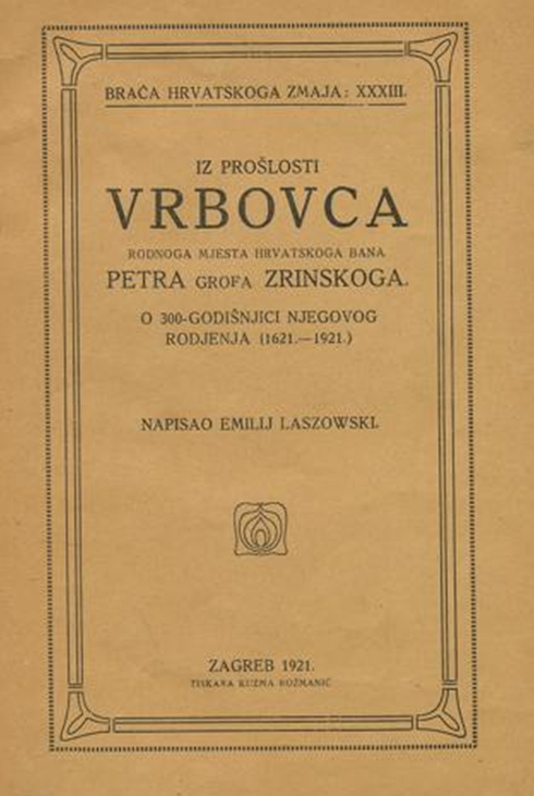 Prije sto godina u okviru proslave 300. obljetnice rođenja hrvatskog bana Petra Zrinskog objavljena je knjiga “Iz prošlosti Vrbovca”, koju je napisao hrvatski povjesničar Emilij Laszowski, koji je ujedno bio i predsjednik Družbe hrvatskog zmaja. Tiskanje knjige izvršeno je u poznatoj zagrebačkoj tiskari Kuzme Rožmanića, a svjetlost dana je ugledala u izdanju Družbe hrvatskog zmaja. Na 47 stranica detaljno se opisuje povijest grada Vrbovca. Pored tekstualnog dijela u knjizi se nalazi slika Petra Zrinskog i slike grada Vrbovca. To je bio još jedan doprinos Emilija Laszowskog u promicanju obitelji Zrinski, ali i povijesno-društvene ostavštine Vrbovca u minulim stoljećima.